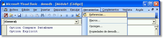 Asimismo, deberá eliminar ABarCode de la lista de Referencias de las bases de datos donde haya utilizado el Asistente. Para ello, siga estos pasos: