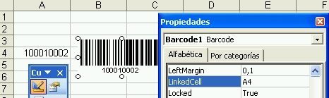 Para vincular el código de barras al contenido de una celda, ingrese la dirección de la celda en la propiedad LinkedCell.